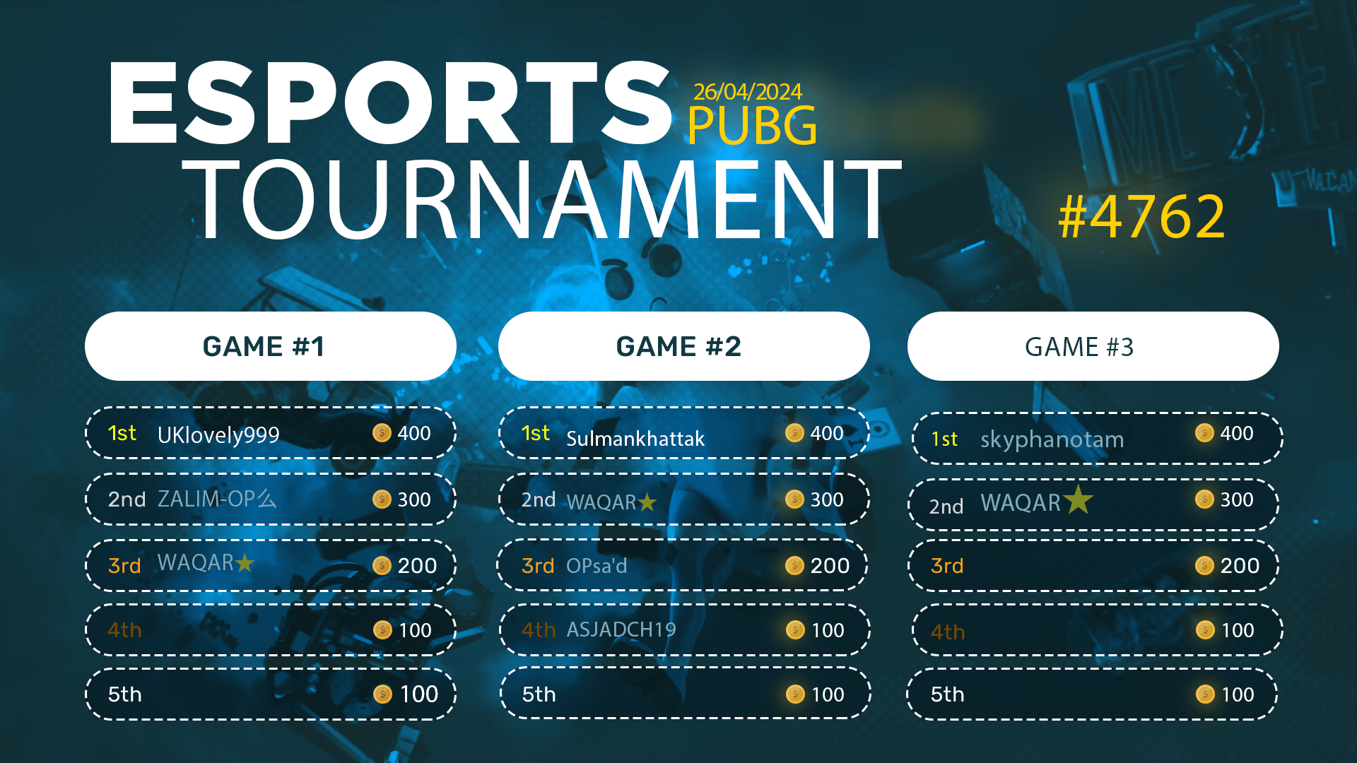 Esports Tournament #4762- PUBG Mob- 26/04/2024